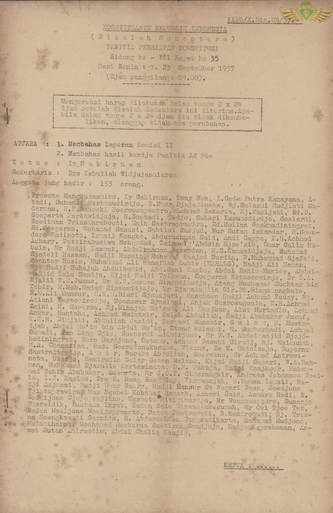 Konstituante RI kepada KGPAA. Paku Alam VIII (Anggota Konstituante) Yogyakarta tanggal 19 September 1957, tentang Laporan Komisi Konstitusi mangenai Dasar Negara, Pembahasan Laporan Panitia Ad Hoc Komisi Istilah.