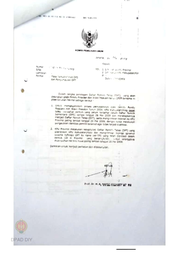 Surat dari KPU perihal masa pemutakhiran data pemilih Pemilu Presiden dan pengumpulan DPT.